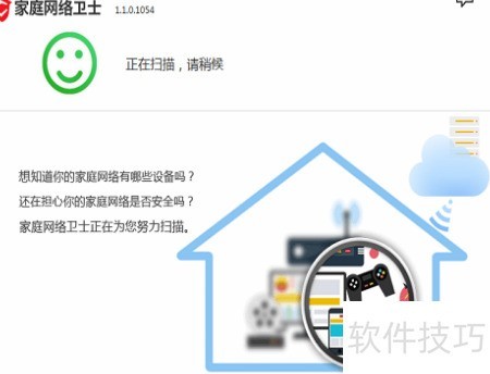 2、 安装完成后界面,等待扫描,首先显示家中联网设备数量。