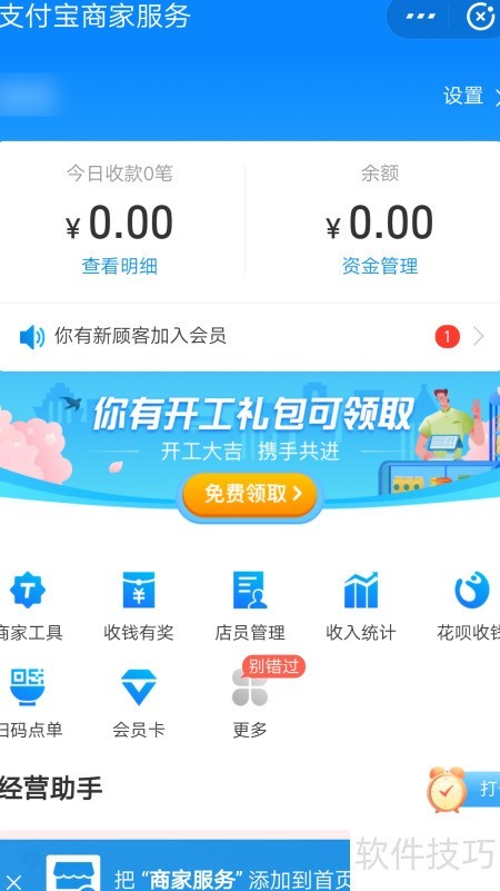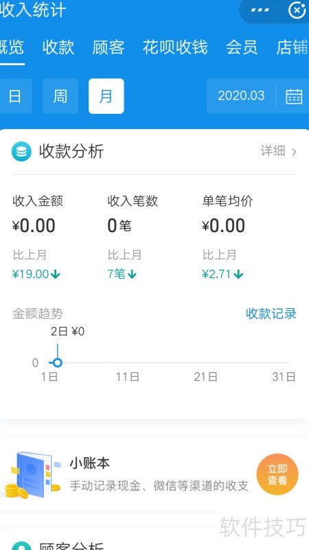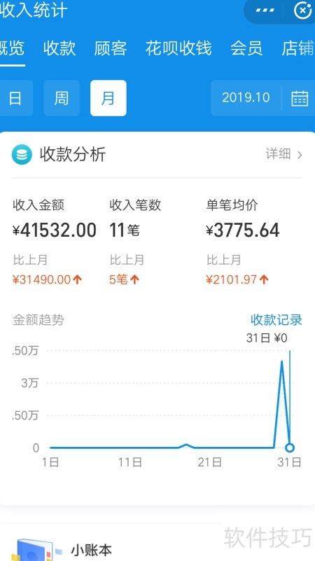 通过支付宝商家服务收款后,可进入账单或生意助手功能,查看交易明细与收入汇总,轻松掌握经营收益情况。