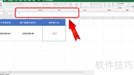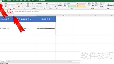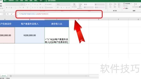 4、 将家庭年收入除以房产总价,计算收支比例。