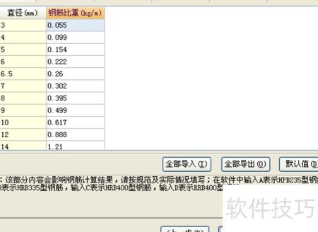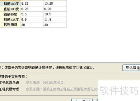 11、 按规范及平法要求默认设置,一般无需修改,以免影响算量结果。山东地区实际使用圆6.5钢筋,因书写不便常简写为圆6,若图纸特别注明圆6即指圆6.5,则以标注为准。