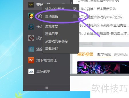 2、 在左侧列表中,对需要自动更新的游戏逐一右键点击,每选一个游戏操作一次,具体操作所示。