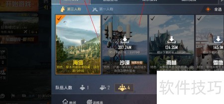 6、 确认后所示,选择娱乐模式,切换至第三人称,地图设为极限竞技,并可设置队伍人数。