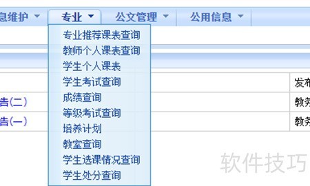3、 点击顶部导航栏的专业选项,进入后选择成绩查询功能即可。