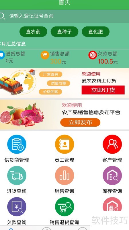 6、 农资管理宝功能全面,登录后可轻松实现农资进销存管理,支持农药种子真伪查询。订货模块实时更新市场行情,农药化肥价格一目了然,支持在线下单,操作便捷。系统还自动生成详细汇总报表,数据清晰精准,管理效率大幅提升,堪比专业财务工具。