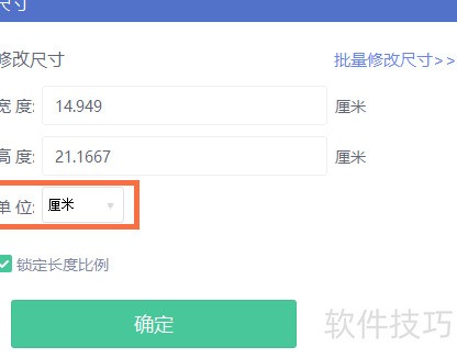 7、 将尺寸单位设为厘米,便于按1寸照片标准调整。