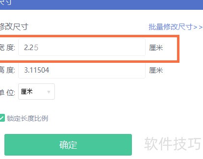 8、 将图片宽度调整为2.25厘米,符合1寸照片标准尺寸(2.2厘米×3.2厘米,允许±0.05厘米误差)。