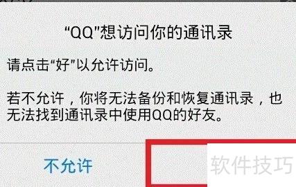 1、 首次登录手机QQ,提示开启通讯录功能。