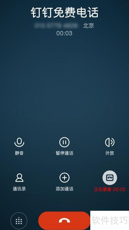 7、 加载完成后,选择需要拨打的号码(无论对方是否开通钉钉均可接通),然后点击免费通话即可开始通话。