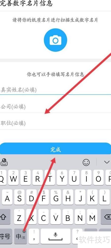 3、 在弹出页面填写数字名片信息,点击完成即可。