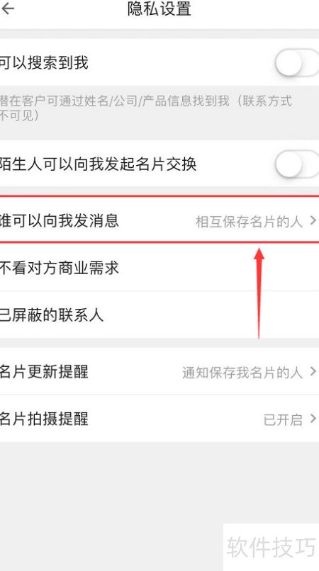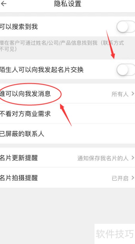 4、 关闭陌生人发起名片交换功能,避免被打扰,操作方法见下图。