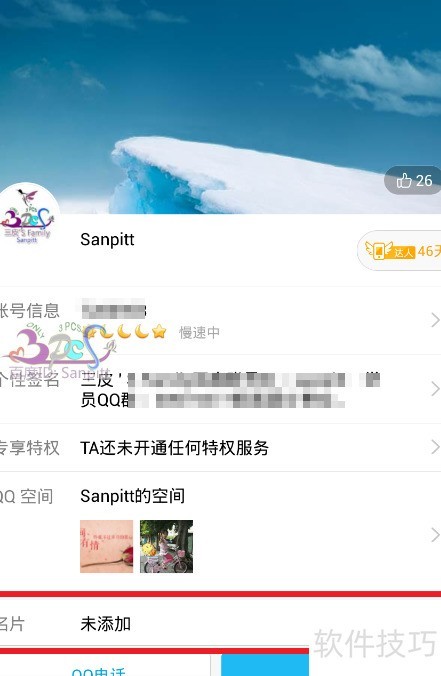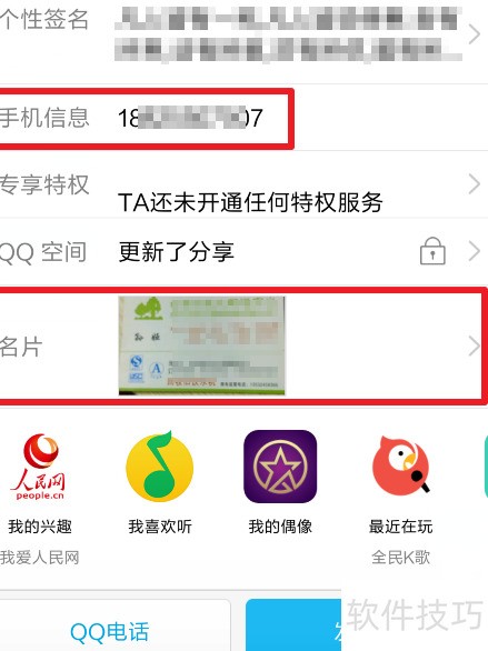 1、 打开手机QQ,选择好友,查看其下方的名片备注信息即可识别名片内容。