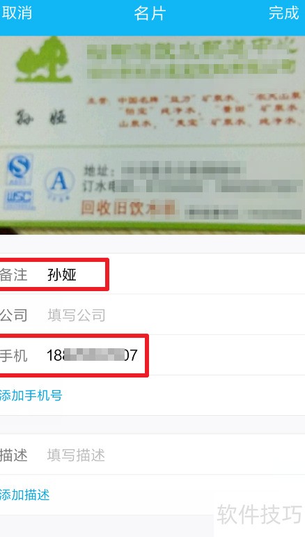 8、 提交后,QQ好友的名片备注会显示该图片,即便信息未完全识别,也能直接查看名片图像。