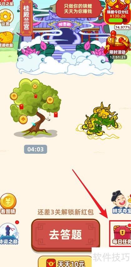 领取成语黄金屋每日任务金币的方法如下:进入游戏后点击任务界面,完成指定任务,即可领取金币奖励。