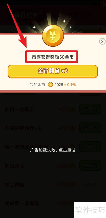 4、 任务奖励金币已领取,详情见图。
