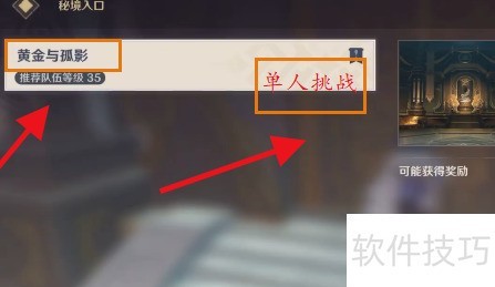 8、 进入黄金与孤影界面,点击单人挑战开始游戏。
