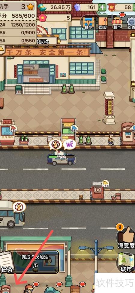 1、 进入游戏后前往加油站,点击下方设施即可操作。