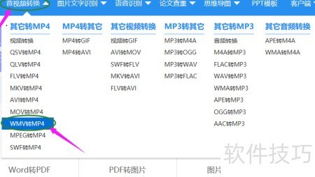 2、 在导航栏音视频转换选项下,找到并点击wmv转mp4功能进行操作。