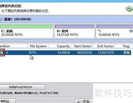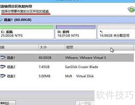 4、 选择目标磁盘以恢复分区,点击下一步,操作所示。