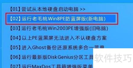 1、 进入老毛桃主界面,选择运行老毛桃Win8PE防蓝屏版(新电脑),按下回车键确认,操作所示。