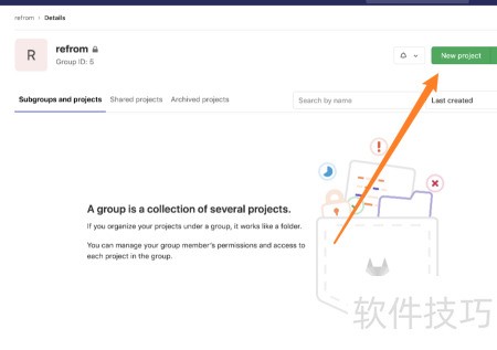 1、 进入GitLab后,定位到目标位置,点击创建新项目。可建在组内或直接新建,位置不限,只需完成项目创建即可。