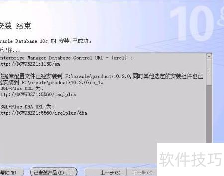 2、 确认Oracle已正确安装,安装过程中出现错误或其他问题均可能造成影响。以Oracle10g为例,可通过已安装的产品选项查看已安装的程序列表,确保所有组件完整无误。