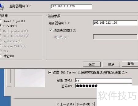 10、 所谓客户端配置中的IP即为第六步所填的IP,端口则为动态分配,可能为80,网络协议默认使用TCP/IP。若不希望采用动态方式,可在SQL Server中开启一个未被占用的端口,专用于数据库连接。不过我并未采取这种方式,操作上更为简便。