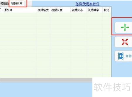 20、 点击视频合并,再点加号,打开存放视频的文件夹。