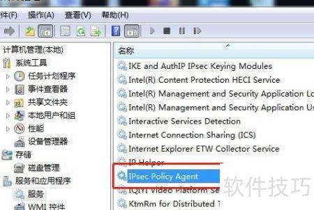 在Win7系统中,通过运行services.msc找到IPsec Policy Agent服务并启动即可。