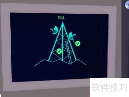 34、 前往通讯塔,攀上梯子,用胶带固定天线并接好断裂的电缆。下塔后,木箱屏幕显示修复完成,插入U盘,点击发送,任务成功,第四章结束。