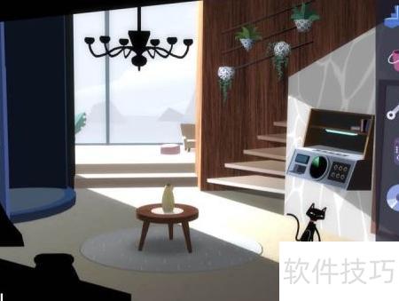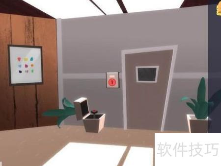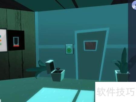 6、 另一侧有扇门,左侧花盆下藏着按钮,按下后浮现开关。启动开关瞬间,房间景象骤然变换,焕然一新。