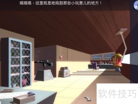 18、 返回零层休息室,乘坐中央升降台抵达露比住处,取走小猫玩耍时的设计图碎片;随后上楼收集走廊碎片,最后进入左侧书房继续探索。
