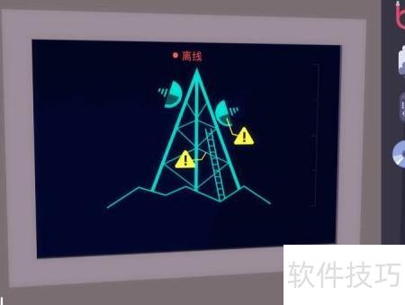 22、 用卡片打开通讯塔旁木箱的门,发现屏幕显示塔有两处故障。