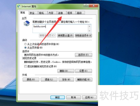 4、 进入后,在弹出菜单的上方一栏中选择连接选项。