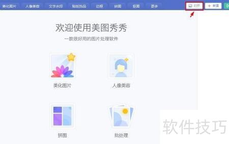 2、 启动美图秀秀,点击打开按钮导入图片。