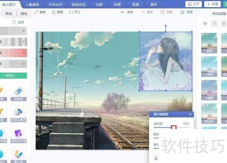 6、 将图片拖至合适位置,并在编辑框中调节透明度至适宜效果。