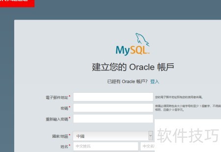 3、 进入MySQL Oracle注册页面后,系统将依据您的所在地区自动显示中文界面。