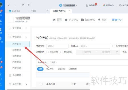 2、 进入考试管理,选择独立考试选项。