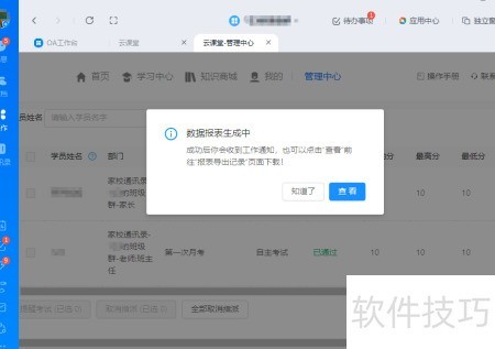 5、 导出成绩后,点击查看或进入工作通知获取详细信息。