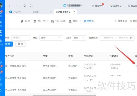 6、 找到本次考试的导出数据,点击右侧下载按钮,将文件保存至电脑,即可自行进行统计分析。