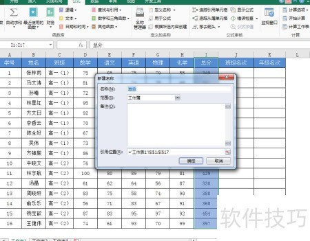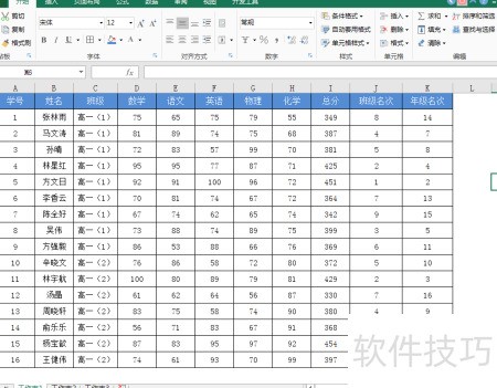 10、 各班级及年级排名排序后的最终结果所示,命名时应使用字母,避免Office无法识别的问题。