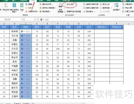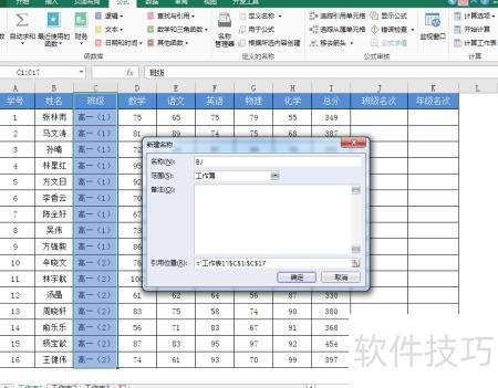 1、 首先需定义区域名称,选中包含班级数据的单元格区域,点击菜单栏中的选项,进入功能,选择进行设置。