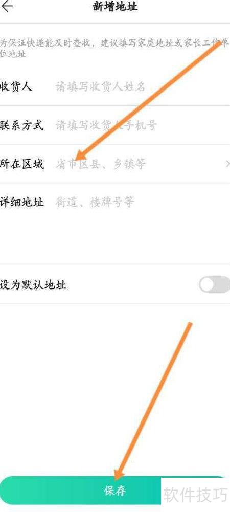 4、 填写收货地址后,点击下方保存按钮完成操作。