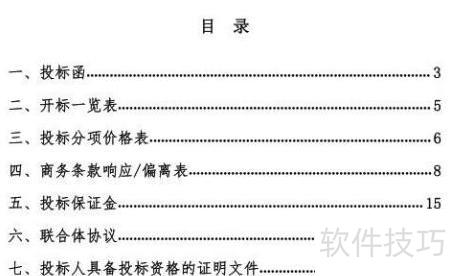 4、 按招标文件要求编制商务标书标题与目录,详见示意图。