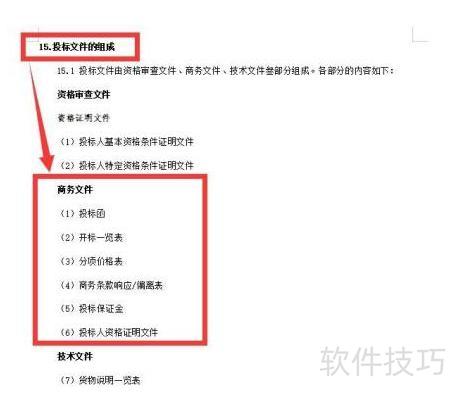 2、 所示,招标文件明确商务标书的编制内容与要求。