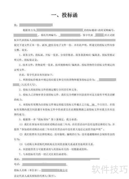 5、 按照招标文件规定的格式,完整填写各标题内容,具体所示。