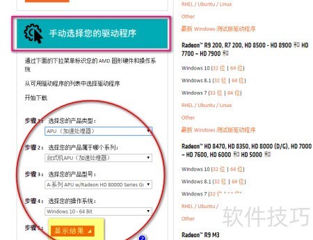 6、 输入显卡信息,依次完成前五步操作,点击显示结果以获取驱动程序安装包。