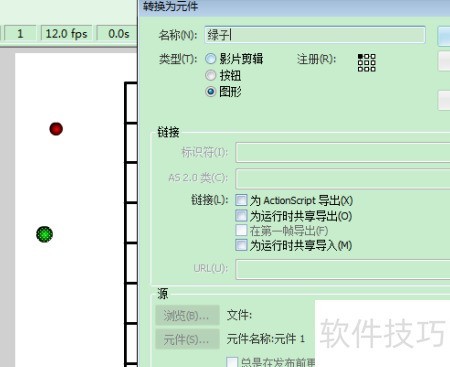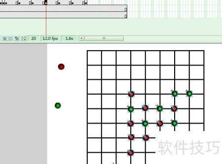 3、 新建图层2,绘制红绿圆点并分别转为元件。