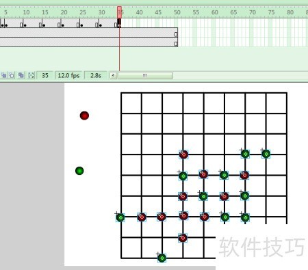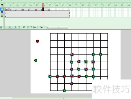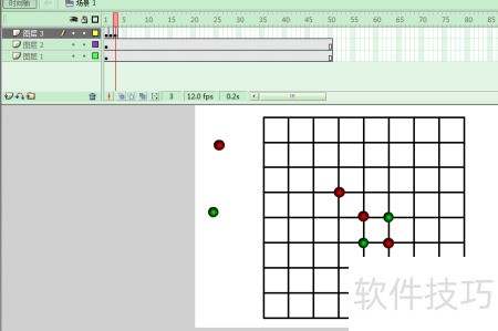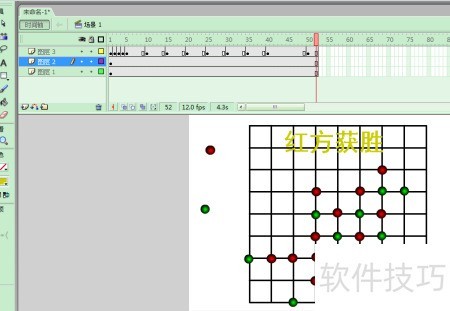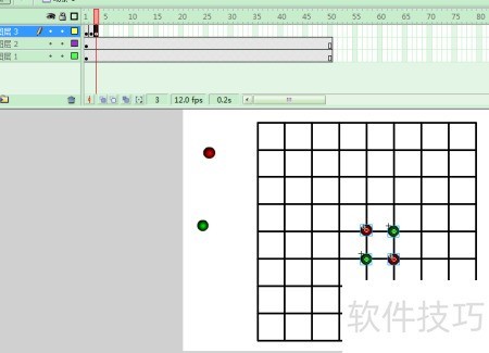 5、 将棋子元件分置图层3各帧,展现精彩五子棋对决。