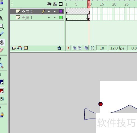利用FLASH制作细水长流动画,小球随水流移动,运用补间与引导线技术实现流畅效果。
