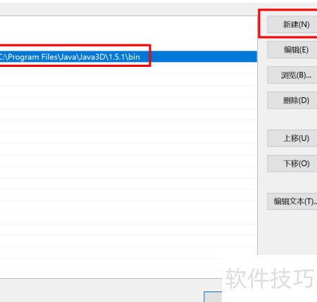 7、 点击新建,添加Java3D的bin目录路径,由于是默认安装,路径位于C盘,最后别忘了依次点击窗口底部的确定按钮保存设置。